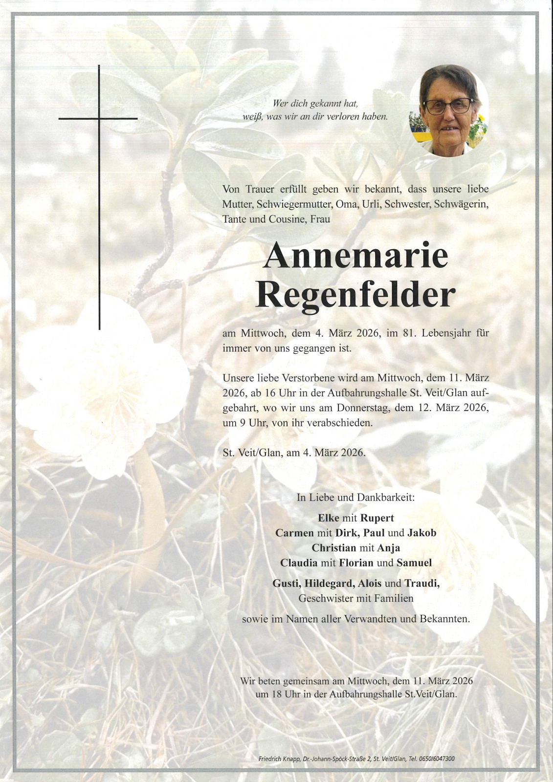 Trauerfeier am 12. März 2026 um 09:00 Uhr,