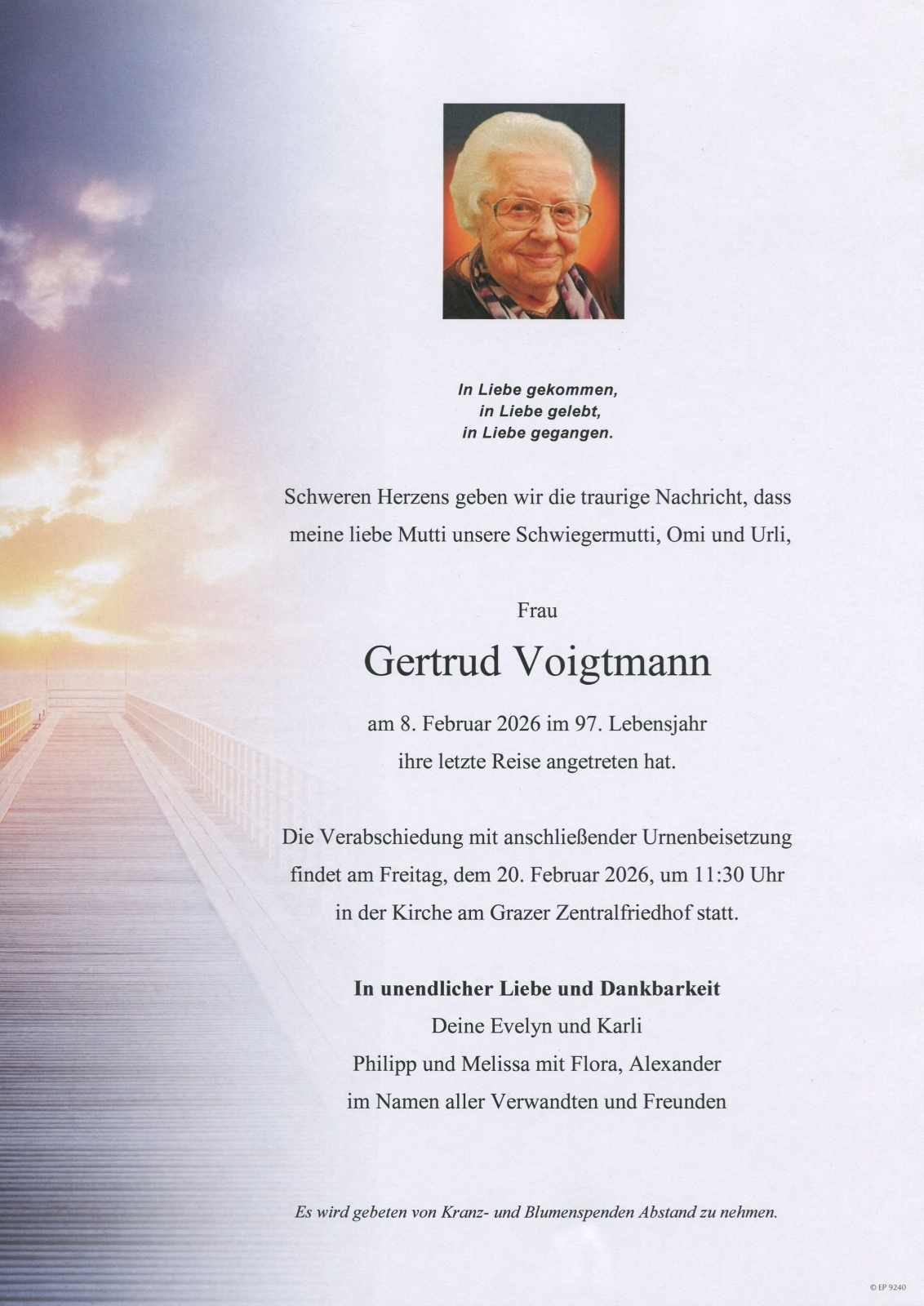 Trauerfeier am 20. Februar 2026 um 11:30 Uhr,
