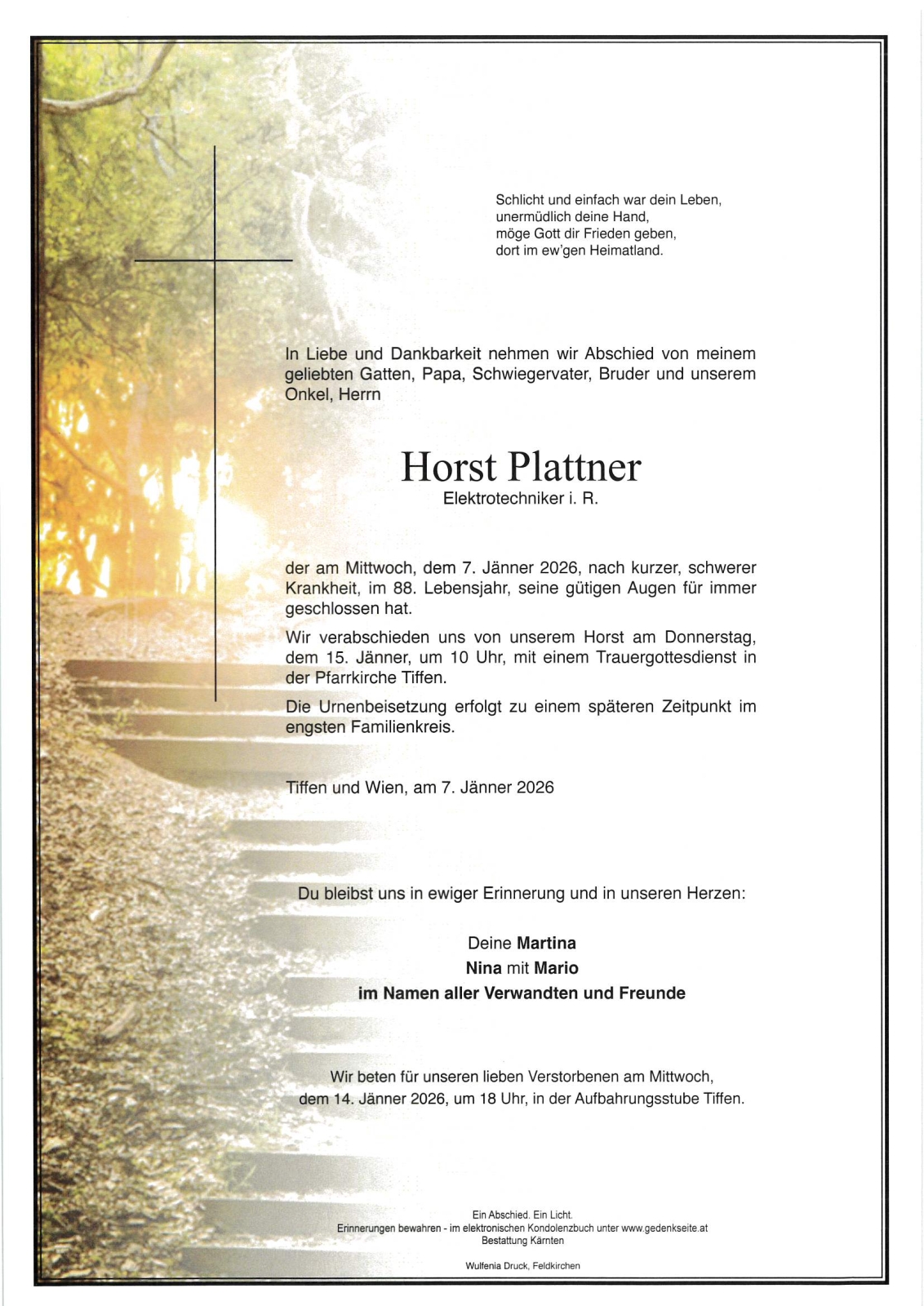 Verschicken Sie eine private Nachricht an die Familie & Hinterbliebenen von Horst Plattner. Diese wird nicht veröffentlicht, sondern landet direkt im E-Mail-Postfach der Administrator:innen dieser persönlichen Gedenkseite.