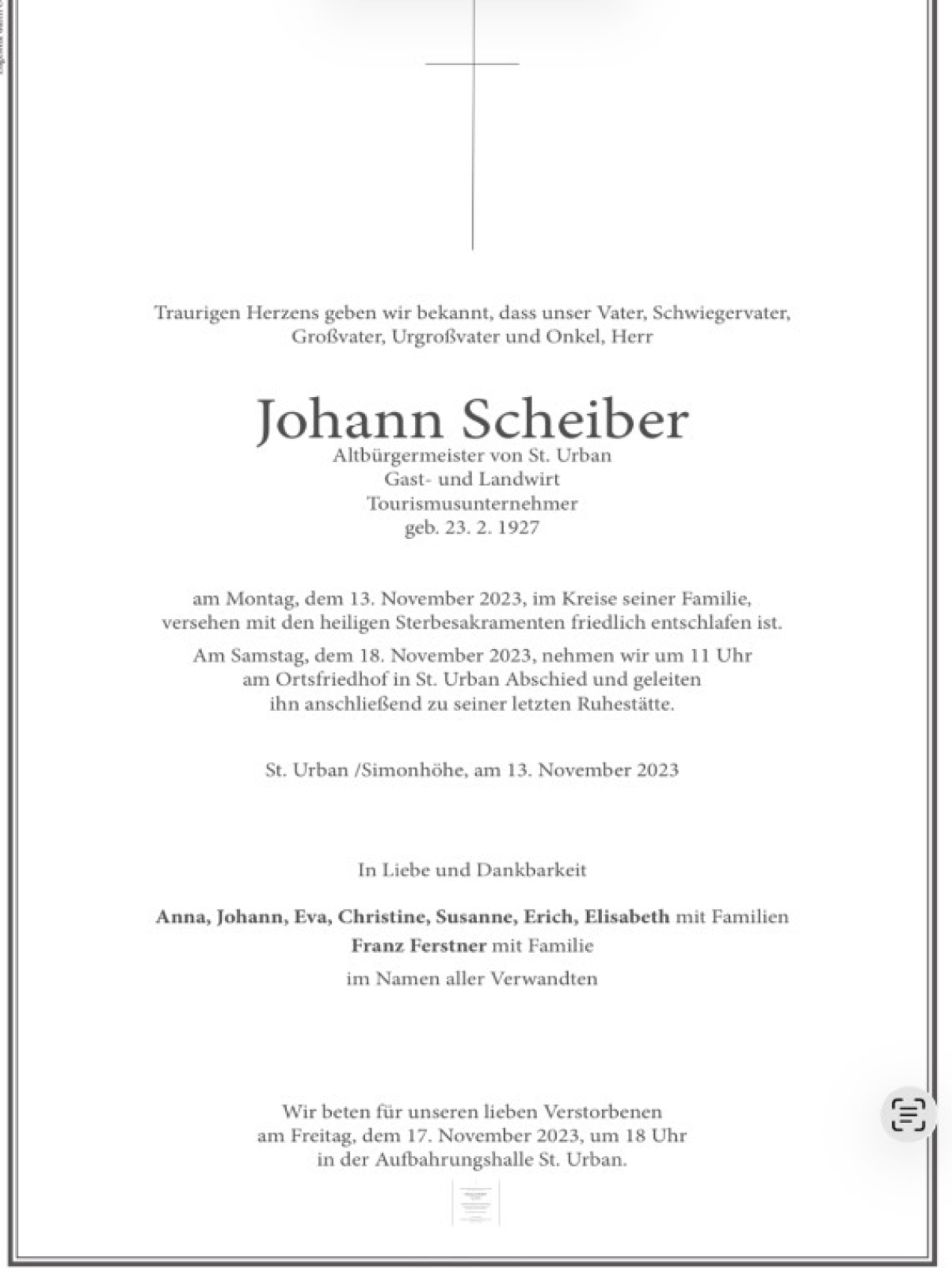 Diese Website ist ein Ort des gemeinsamen Trauerns und um das Band zu Johann Scheiber eng und stark zu halten.