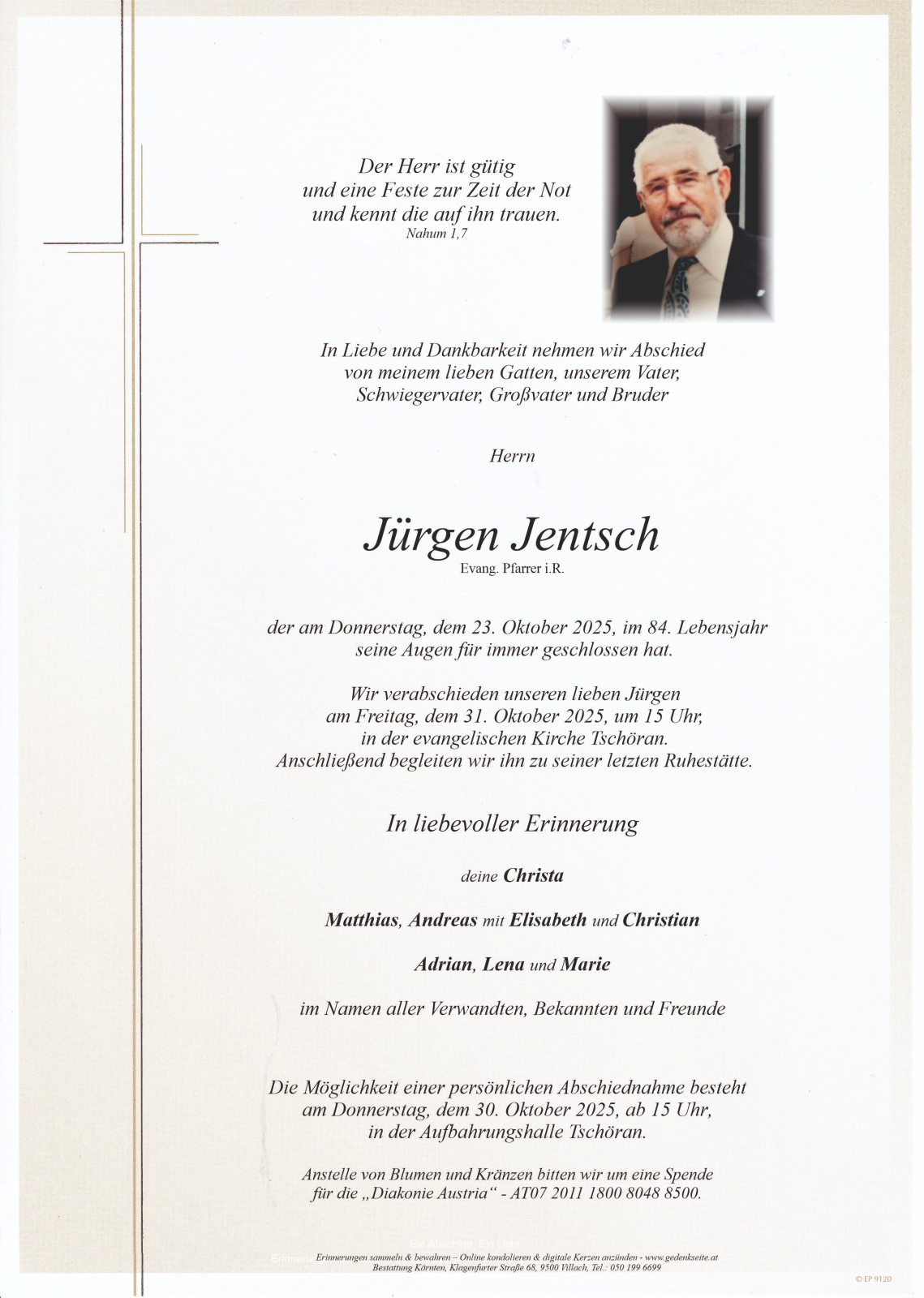 Trauerfeier am 31. Oktober 2025 um 15:00 Uhr,