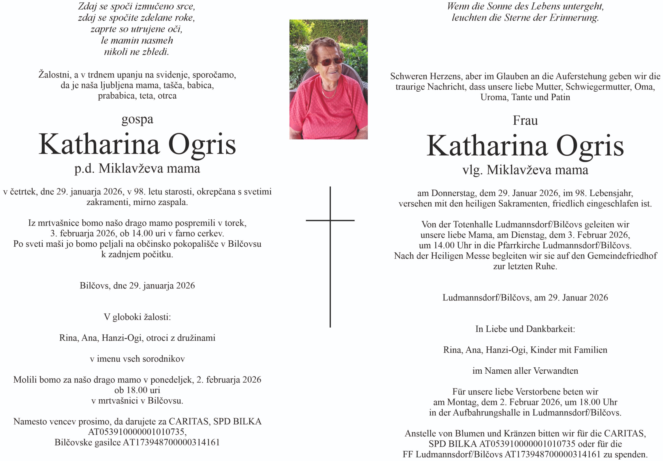 Verschicken Sie eine private Nachricht an die Familie & Hinterbliebenen von Katharina Ogris. Diese wird nicht veröffentlicht, sondern landet direkt im E-Mail-Postfach der Administrator:innen dieser persönlichen Gedenkseite.