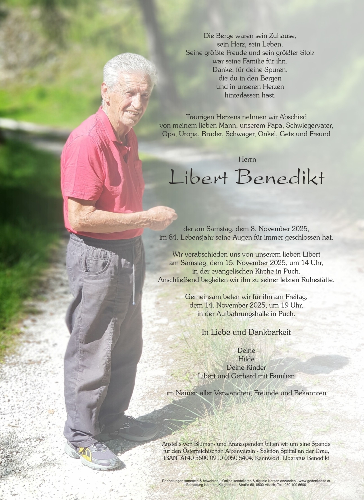Trauerfeier am 15. November 2025 um 14:00 Uhr,