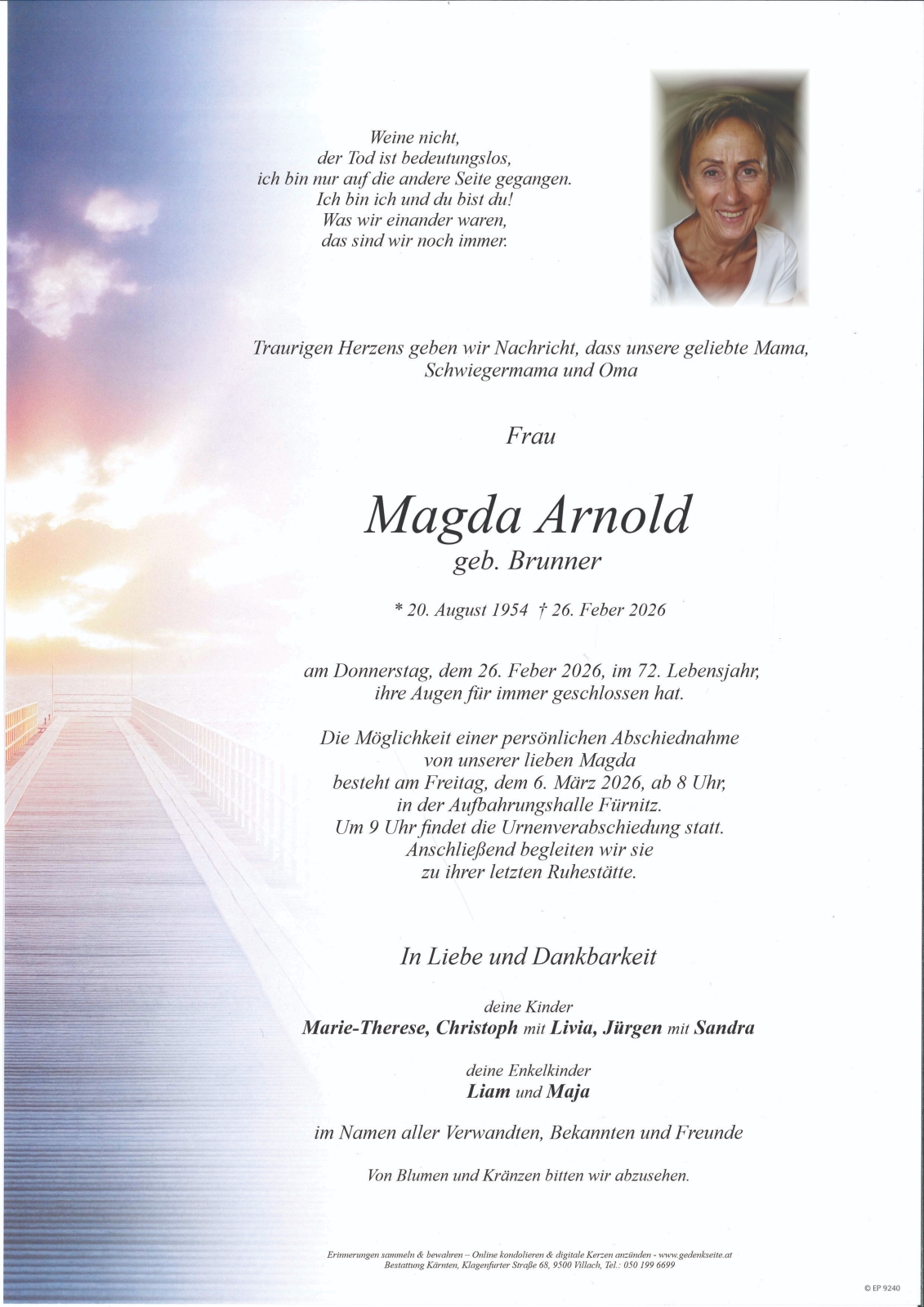 Trauerfeier am 6. März 2026 um 09:00 Uhr,