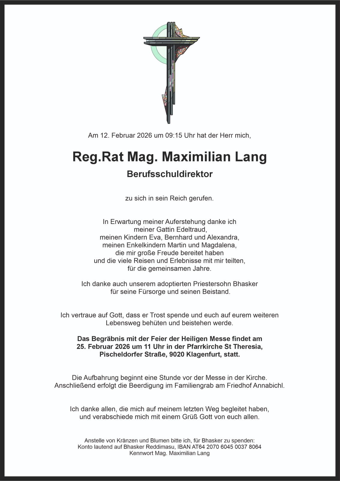 Trauerfeier am 25. Februar 2026 um 11:00 Uhr,