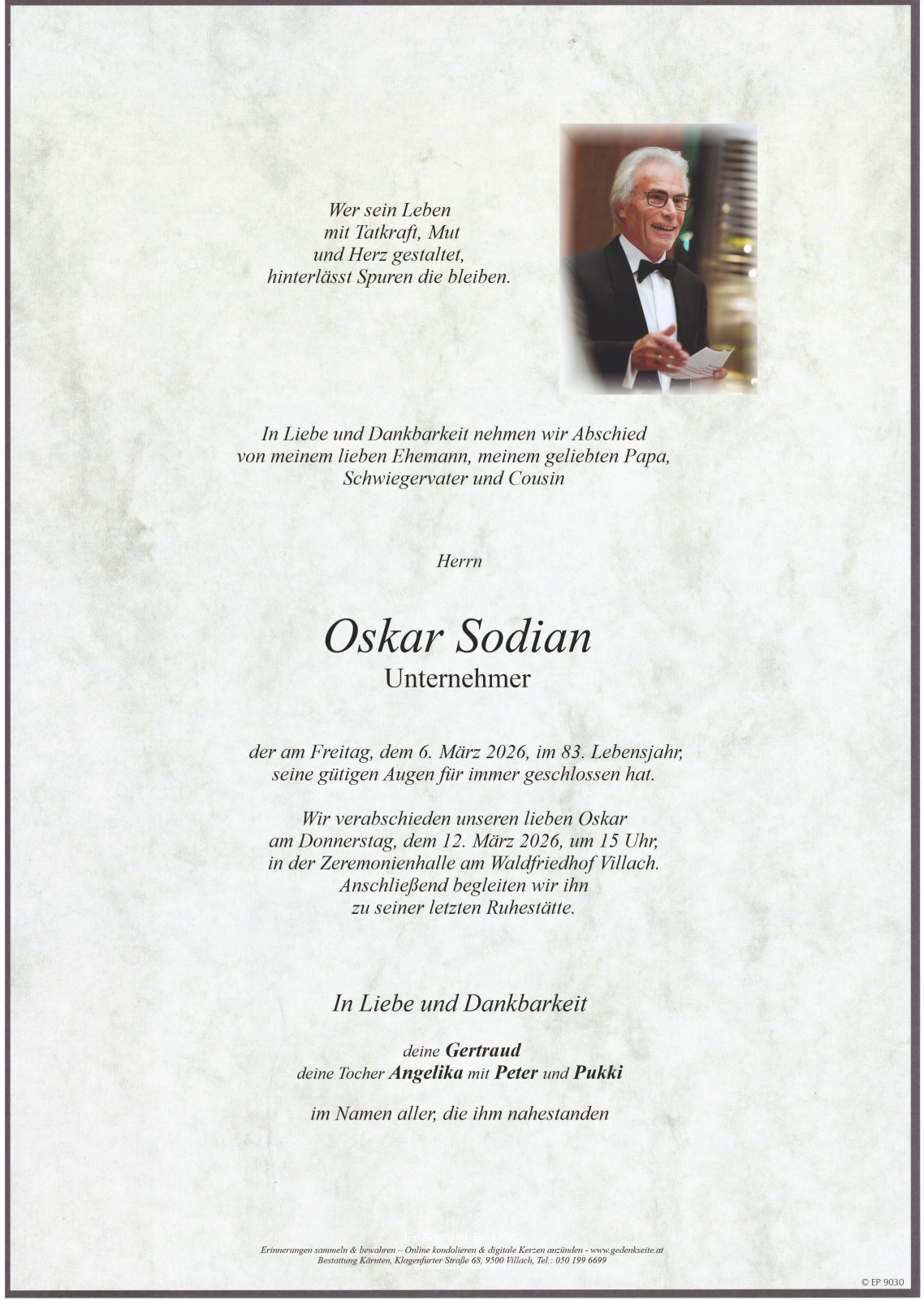 Verschicken Sie eine private Nachricht an die Familie & Hinterbliebenen von Oskar Sodian. Diese wird nicht veröffentlicht, sondern landet direkt im E-Mail-Postfach der Administrator:innen dieser persönlichen Gedenkseite.