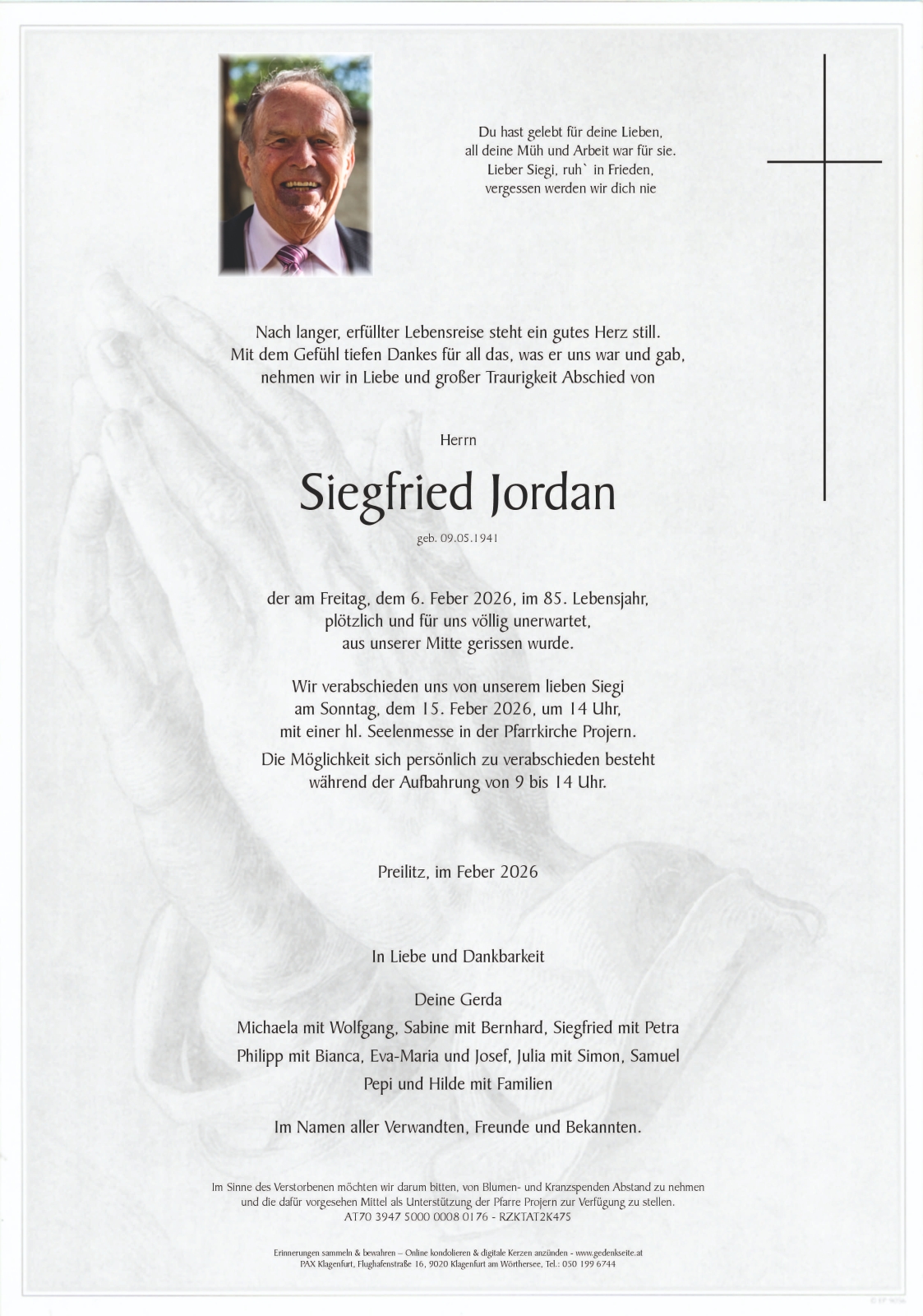 Trauerfeier am 15. Februar 2026 um 14:00 Uhr,