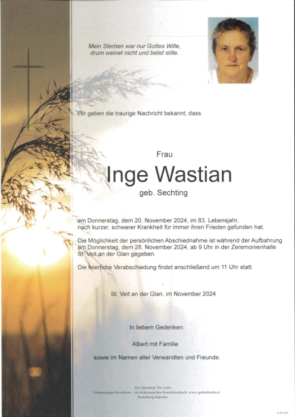 Information zur Suche: Nicht alle Suchangaben sind bei jeder verstorbenen Person hinterlegt. Bei Fragen oder Ergänzungswünschen (z.B. Vulgo- oder Geburtsname) hilft Ihnen unser Team gerne weiter.