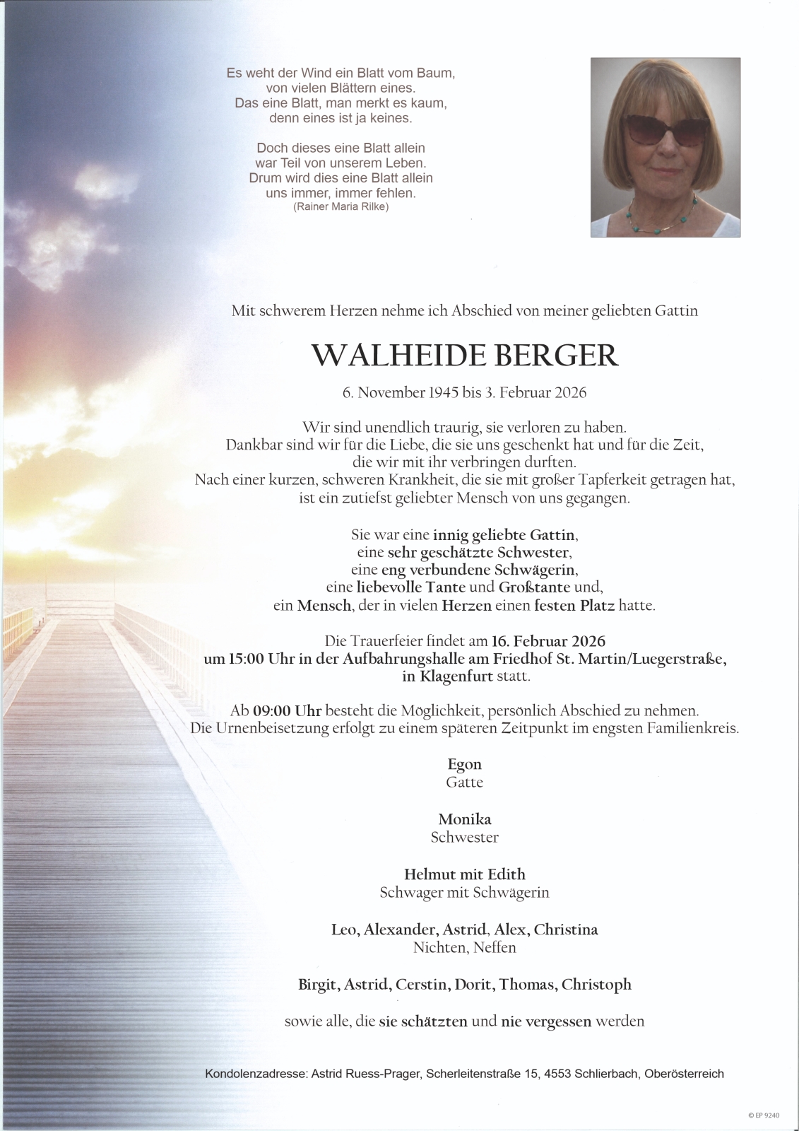 Trauerfeier am 16. Februar 2026 um 15:00 Uhr,