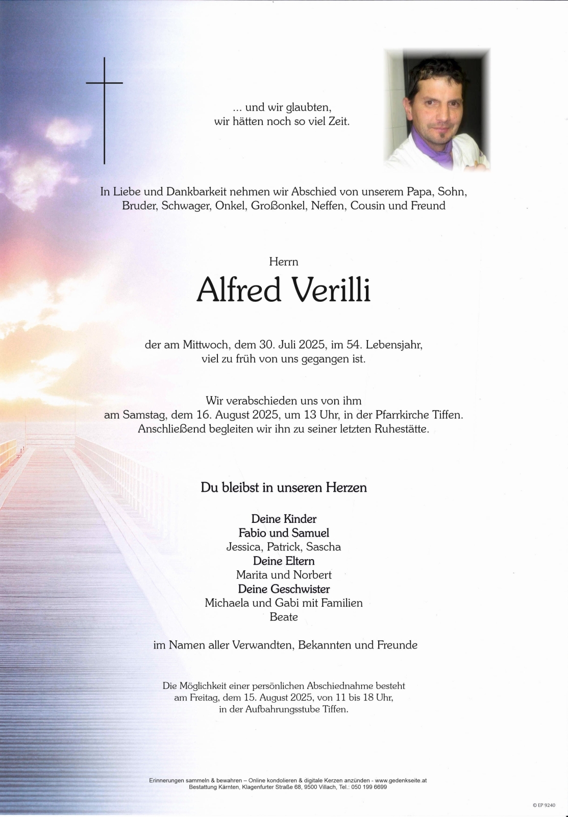 Trauerfeier am 16. August 2025 um 13:00 Uhr,