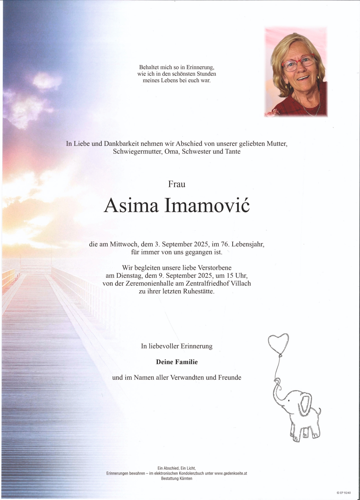 Verschicken Sie eine private Nachricht an die Familie & Hinterbliebenen von Asima Imamović. Diese wird nicht veröffentlicht, sondern landet direkt im E-Mail-Postfach der Administrator:innen dieser persönlichen Gedenkseite.