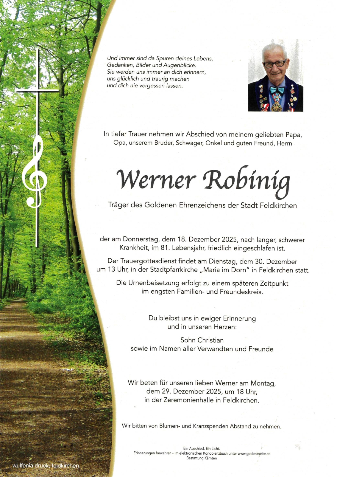 Verschicken Sie eine private Nachricht an die Familie & Hinterbliebenen von August Werner Robinig. Diese wird nicht veröffentlicht, sondern landet direkt im E-Mail-Postfach der Administrator:innen dieser persönlichen Gedenkseite.