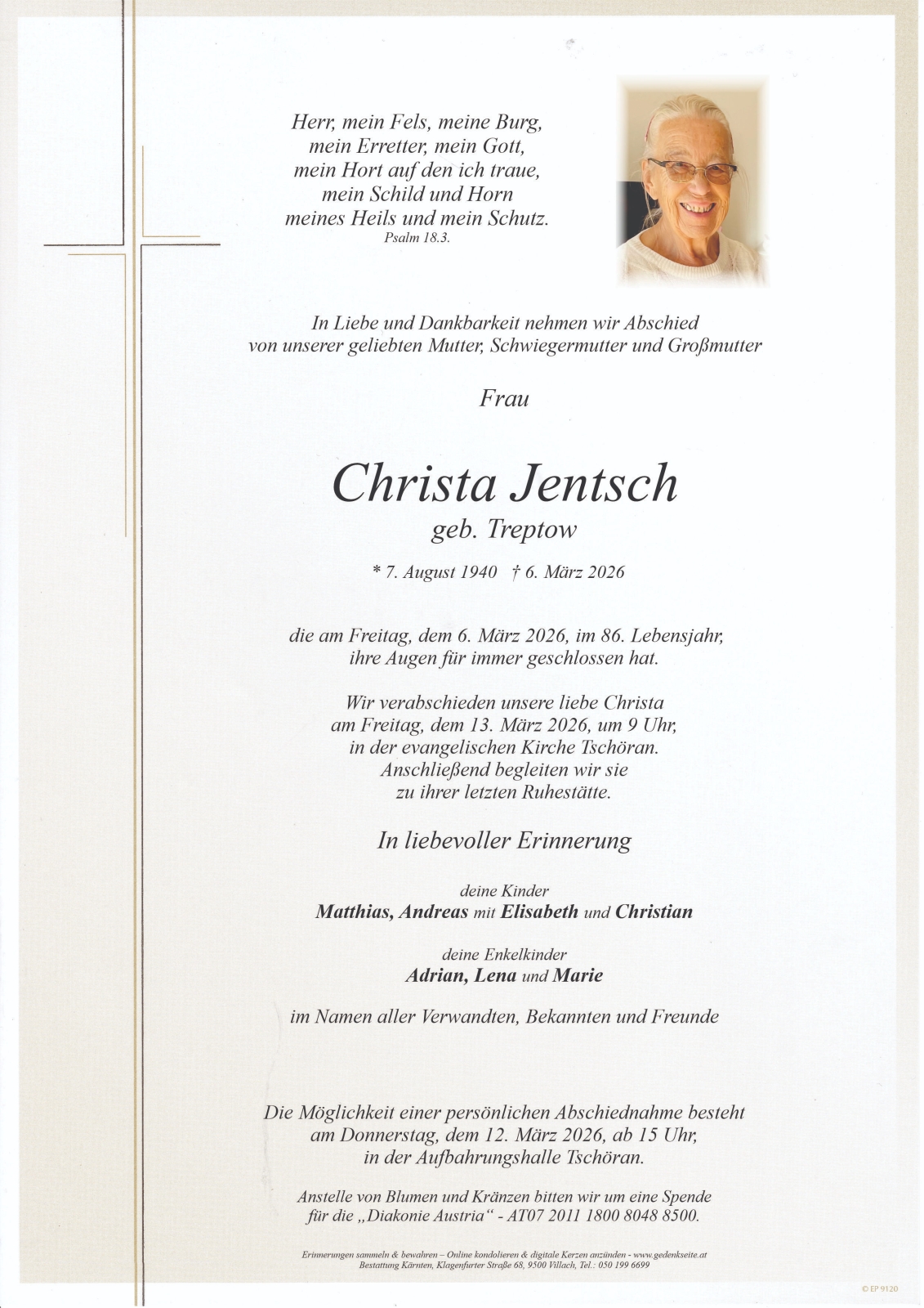 Trauerfeier am 13. März 2026 um 09:00 Uhr,