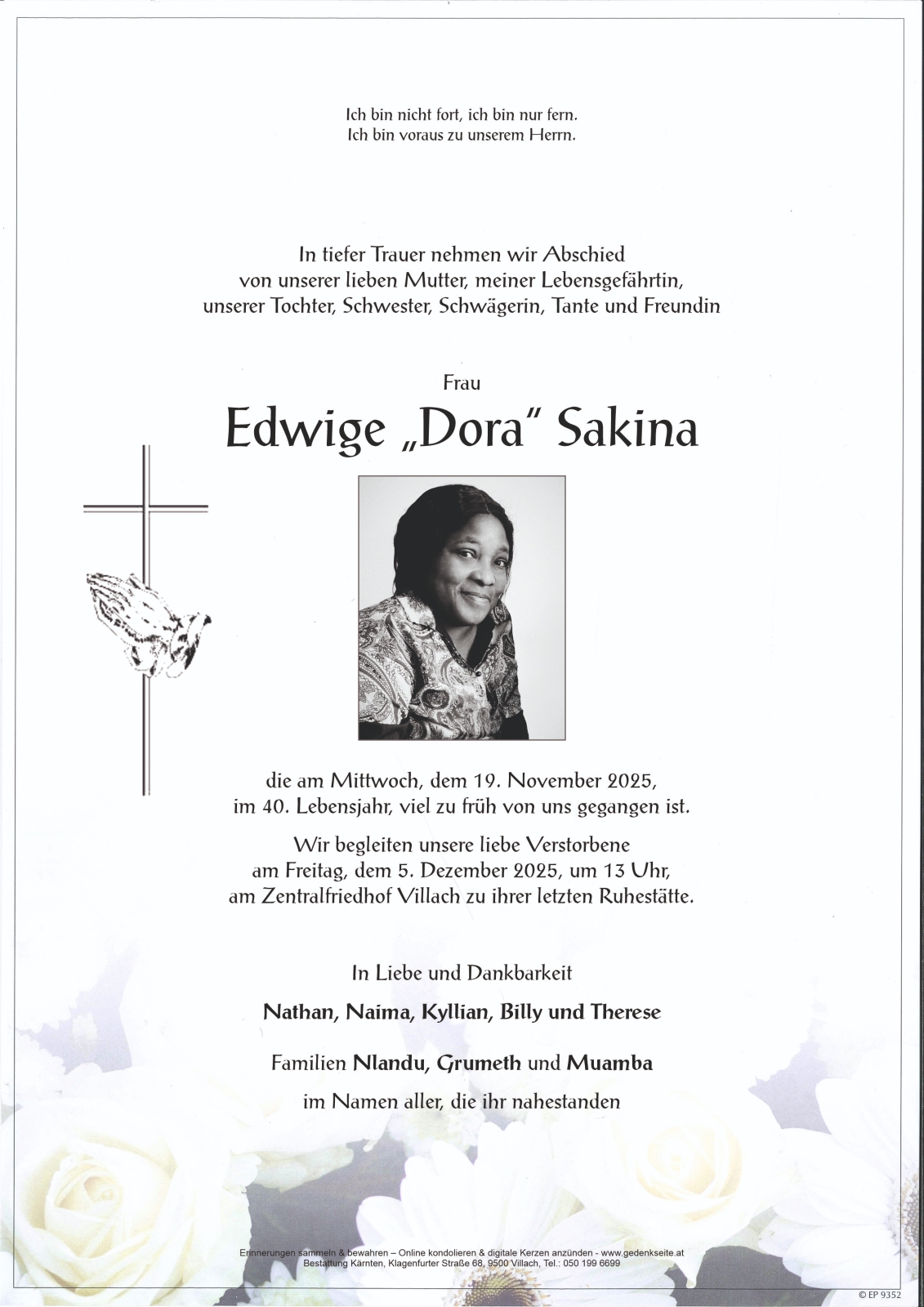 Trauerfeier am 5. Dezember 2025 um 13:00 Uhr,