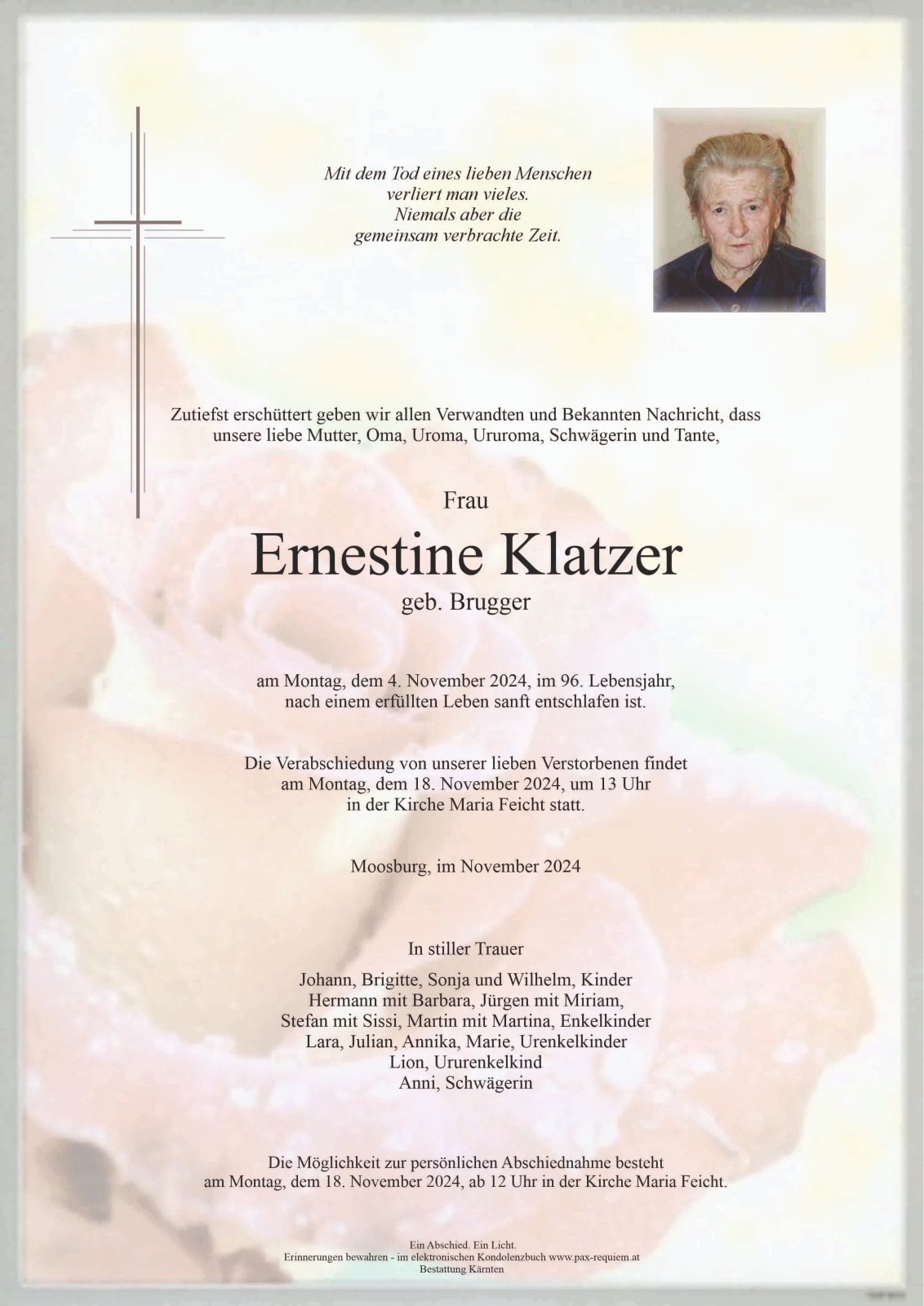 Trauerfeier am 18. November 2024 um 13:00 Uhr,
