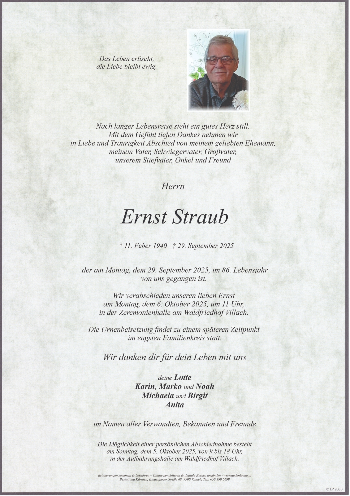 Trauerfeier am 6. Oktober 2025 um 11:00 Uhr,