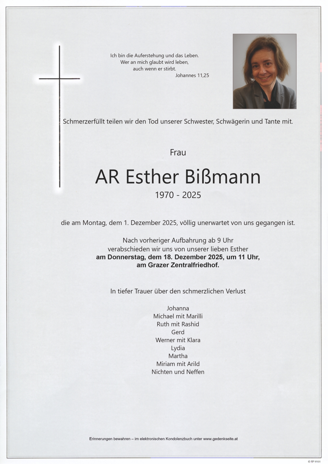 Trauerfeier am 18. Dezember 2025 um 11:00 Uhr,