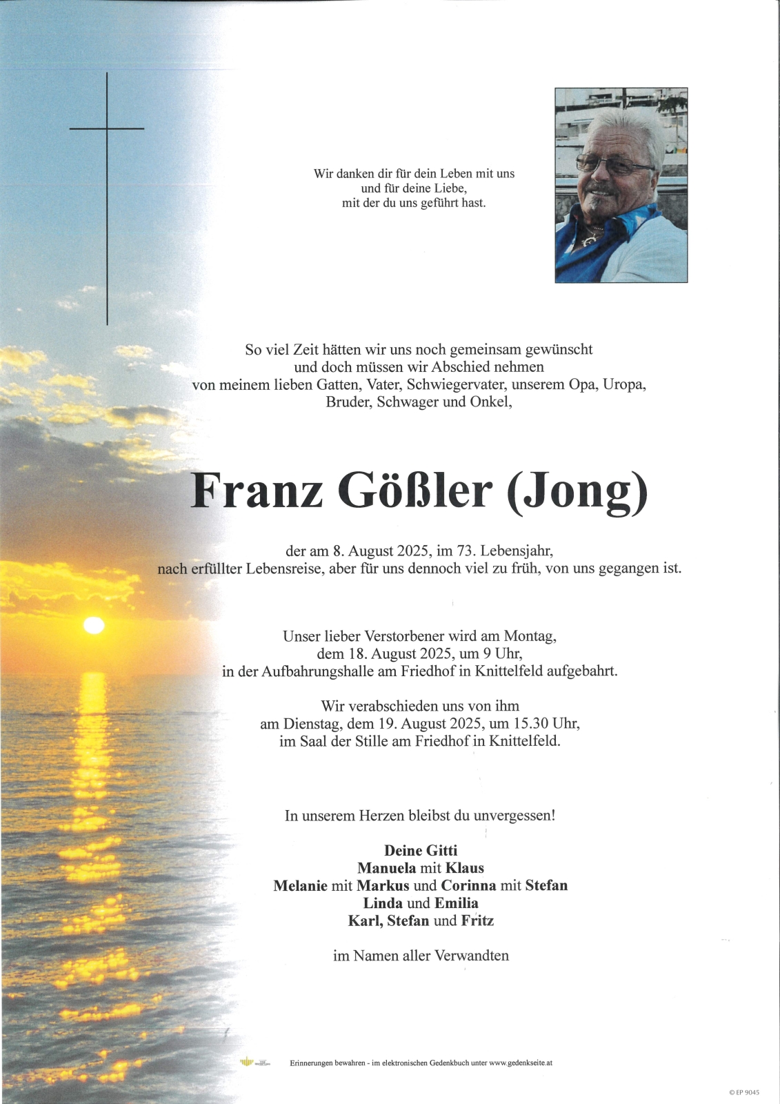 Trauerfeier am 19. August 2025 um 15:30 Uhr,