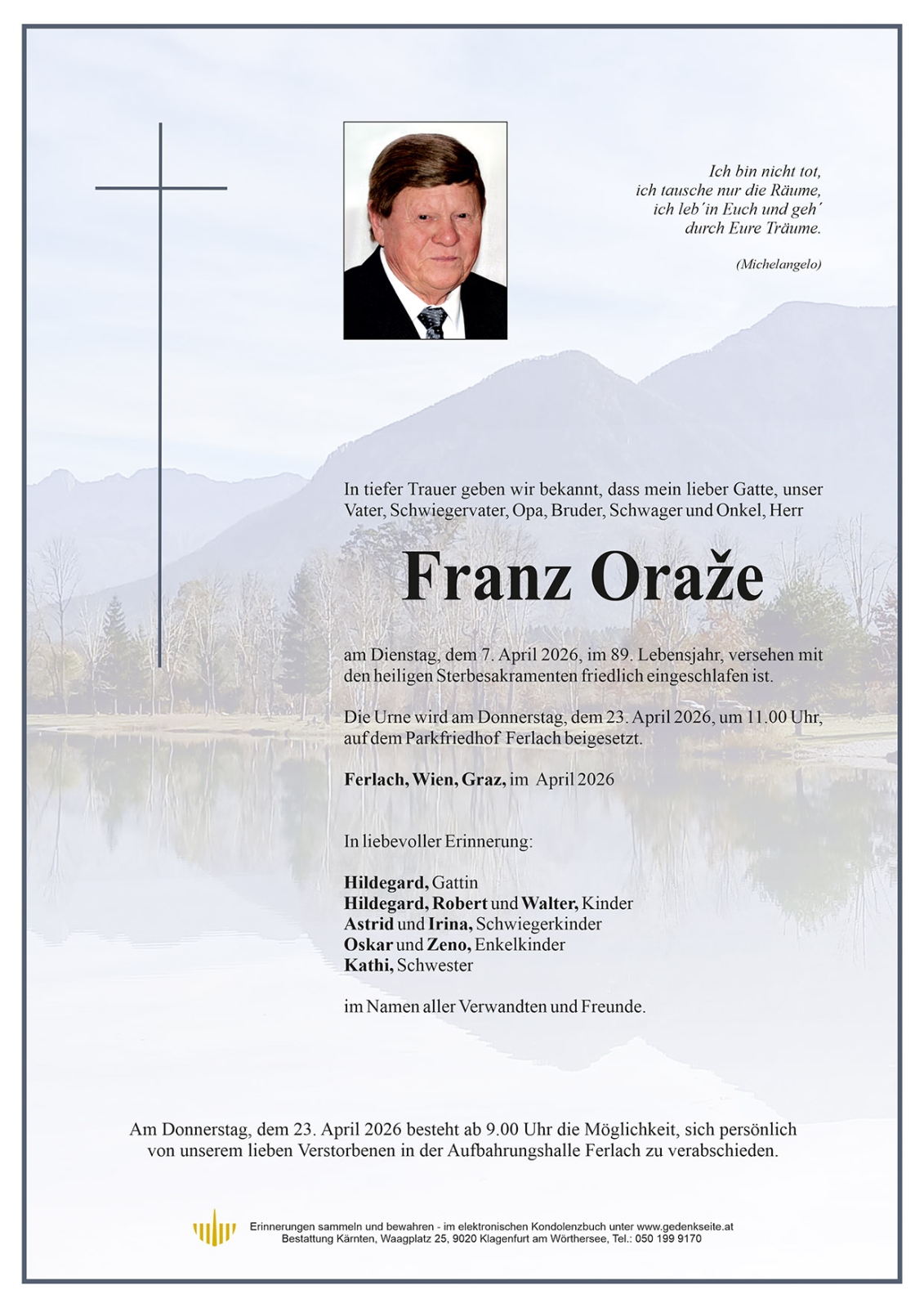 Trauerfeier am 23. April 2026 um 11:00 Uhr,