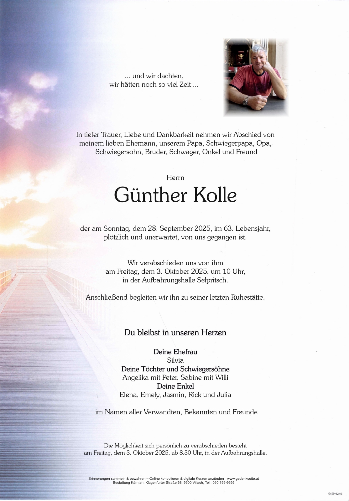 Trauerfeier am 3. Oktober 2025 um 10:00 Uhr,