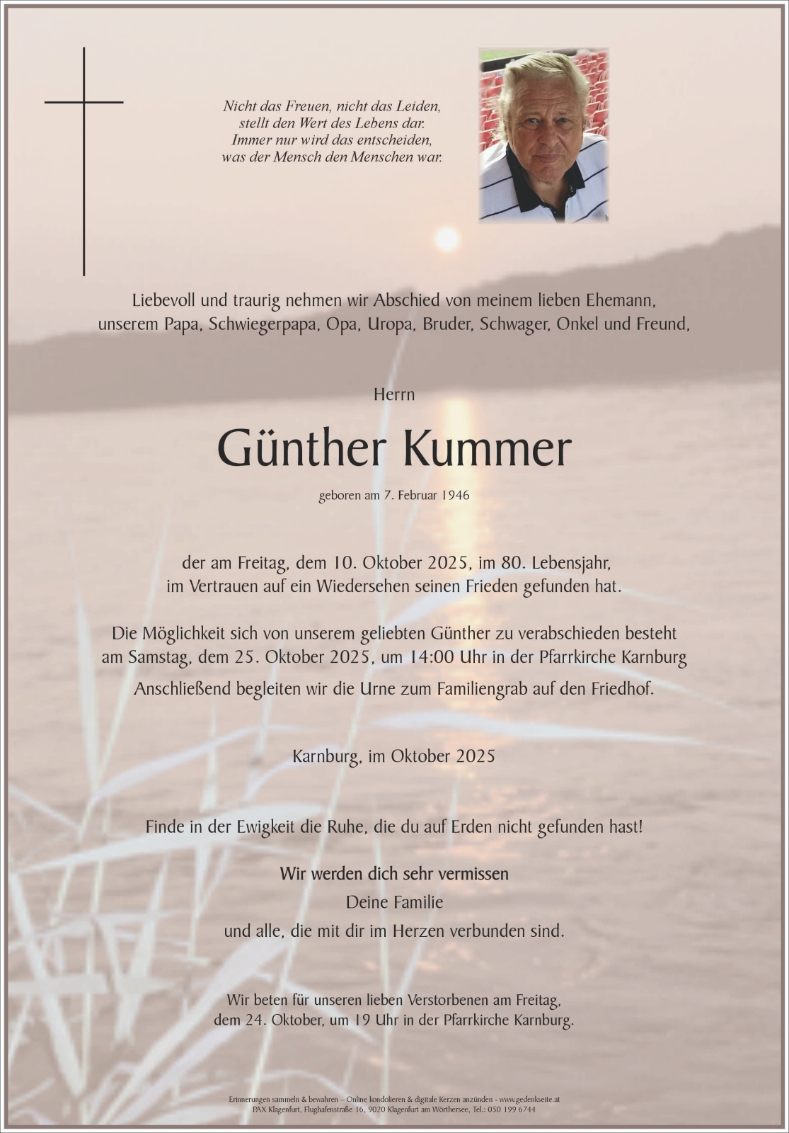 Trauerfeier am 25. Oktober 2025 um 14:00 Uhr,