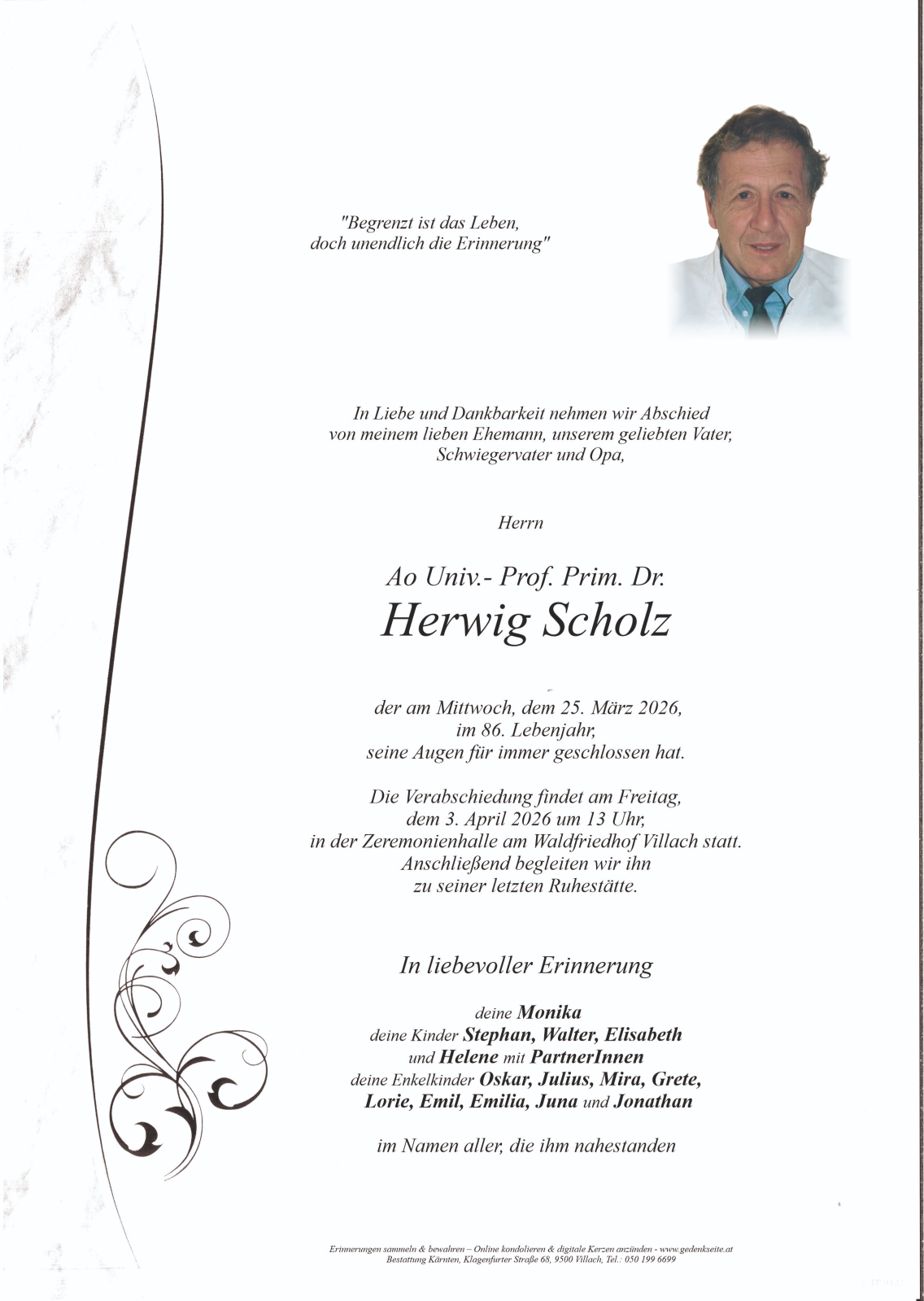 Trauerfeier am 3. April 2026 um 13:00 Uhr,