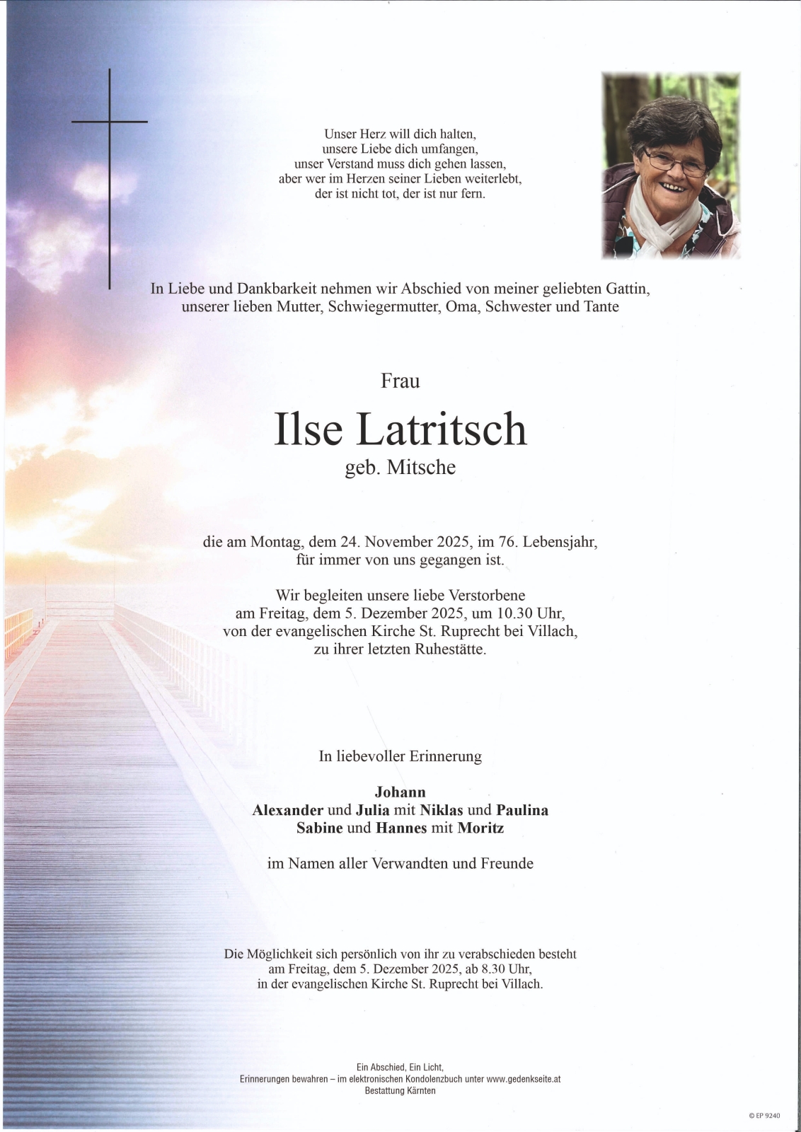 Trauerfeier am 5. Dezember 2025 um 10:30 Uhr,