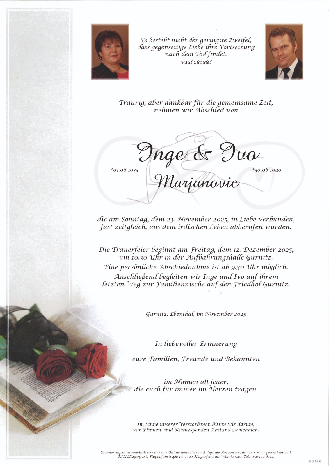 Verschicken Sie eine private Nachricht an die Familie & Hinterbliebenen von Inge Marjanovic. Diese wird nicht veröffentlicht, sondern landet direkt im E-Mail-Postfach der Administrator:innen dieser persönlichen Gedenkseite.