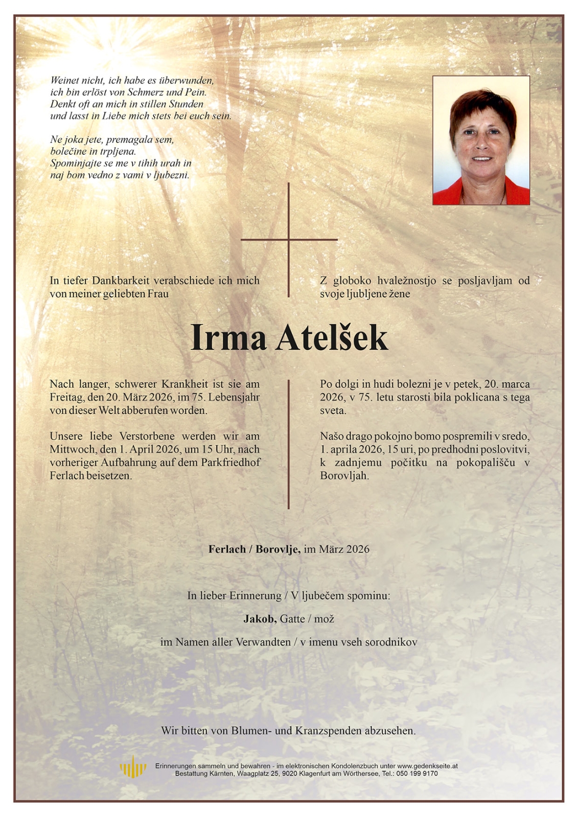 Trauerfeier am 1. April 2026 um 15:00 Uhr,