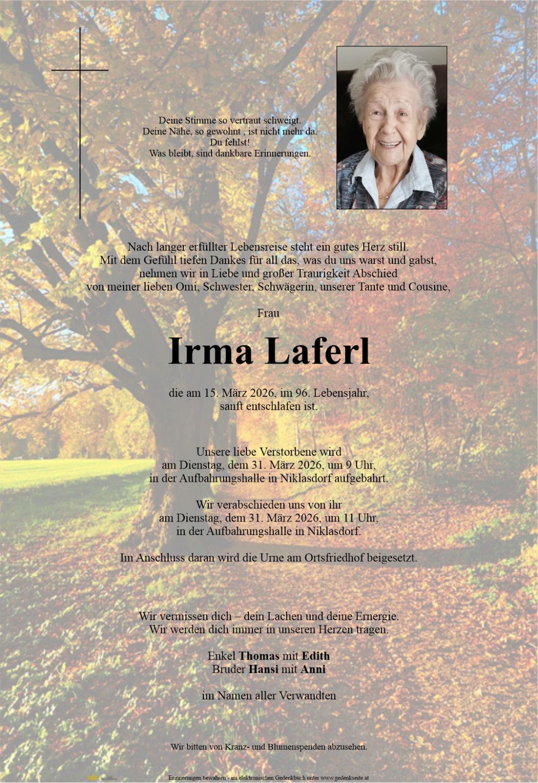 Trauerfeier am 31. März 2026 um 11:00 Uhr,