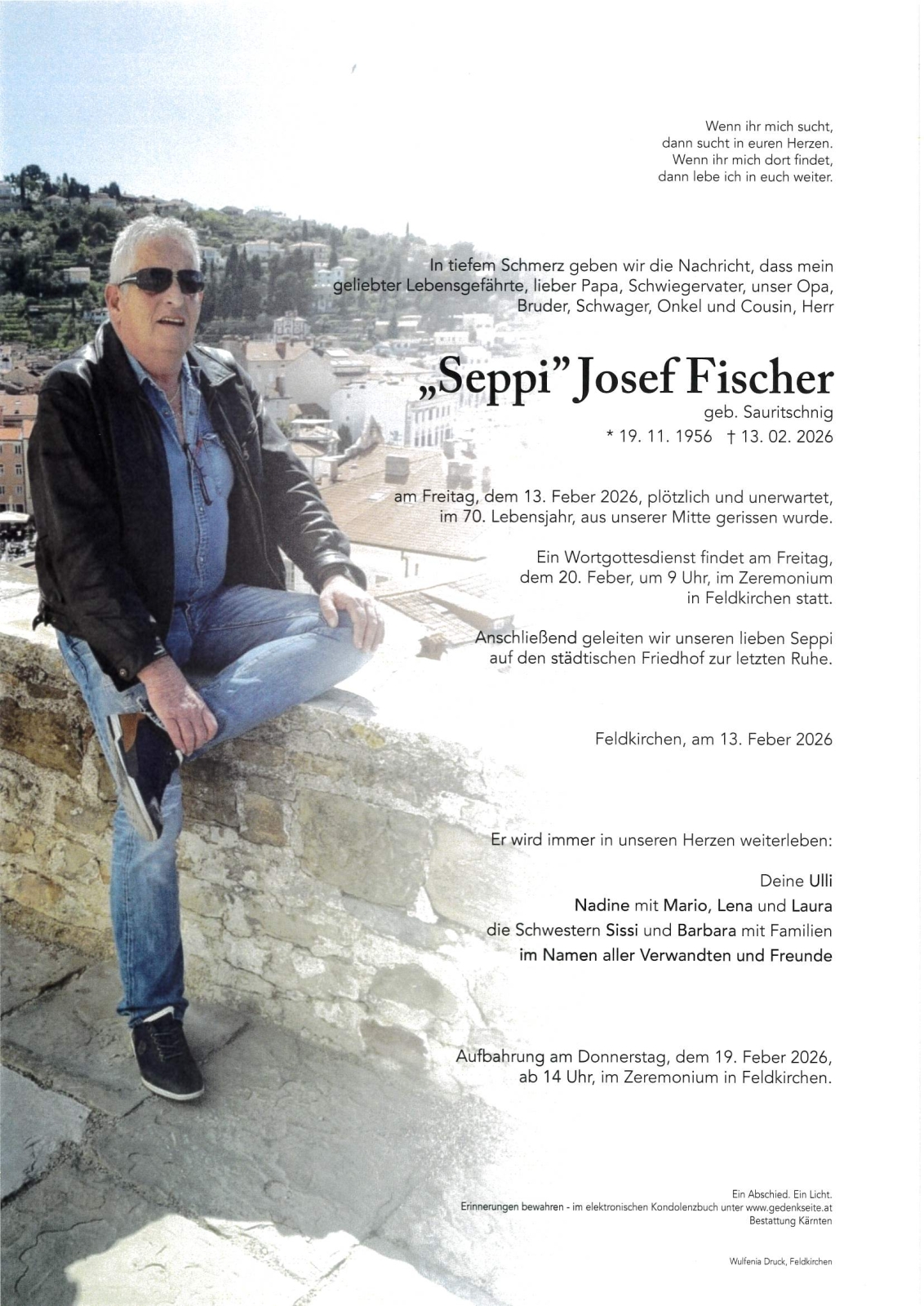 Trauerfeier am 20. Februar 2026 um 09:00 Uhr,