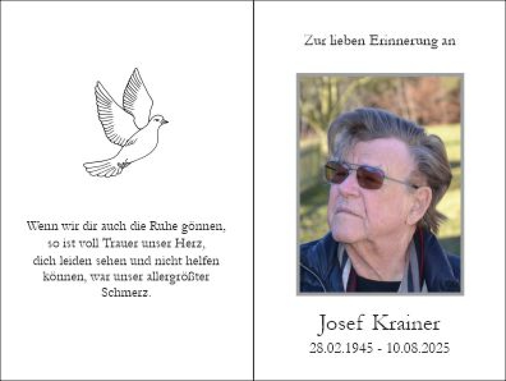 Verschicken Sie eine private Nachricht an die Familie & Hinterbliebenen von Josef Kreiner. Diese wird nicht veröffentlicht, sondern landet direkt im E-Mail-Postfach der Administrator:innen dieser persönlichen Gedenkseite.