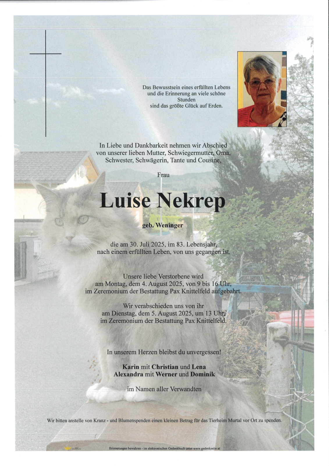 Trauerfeier am 5. August 2025 um 13:00 Uhr,