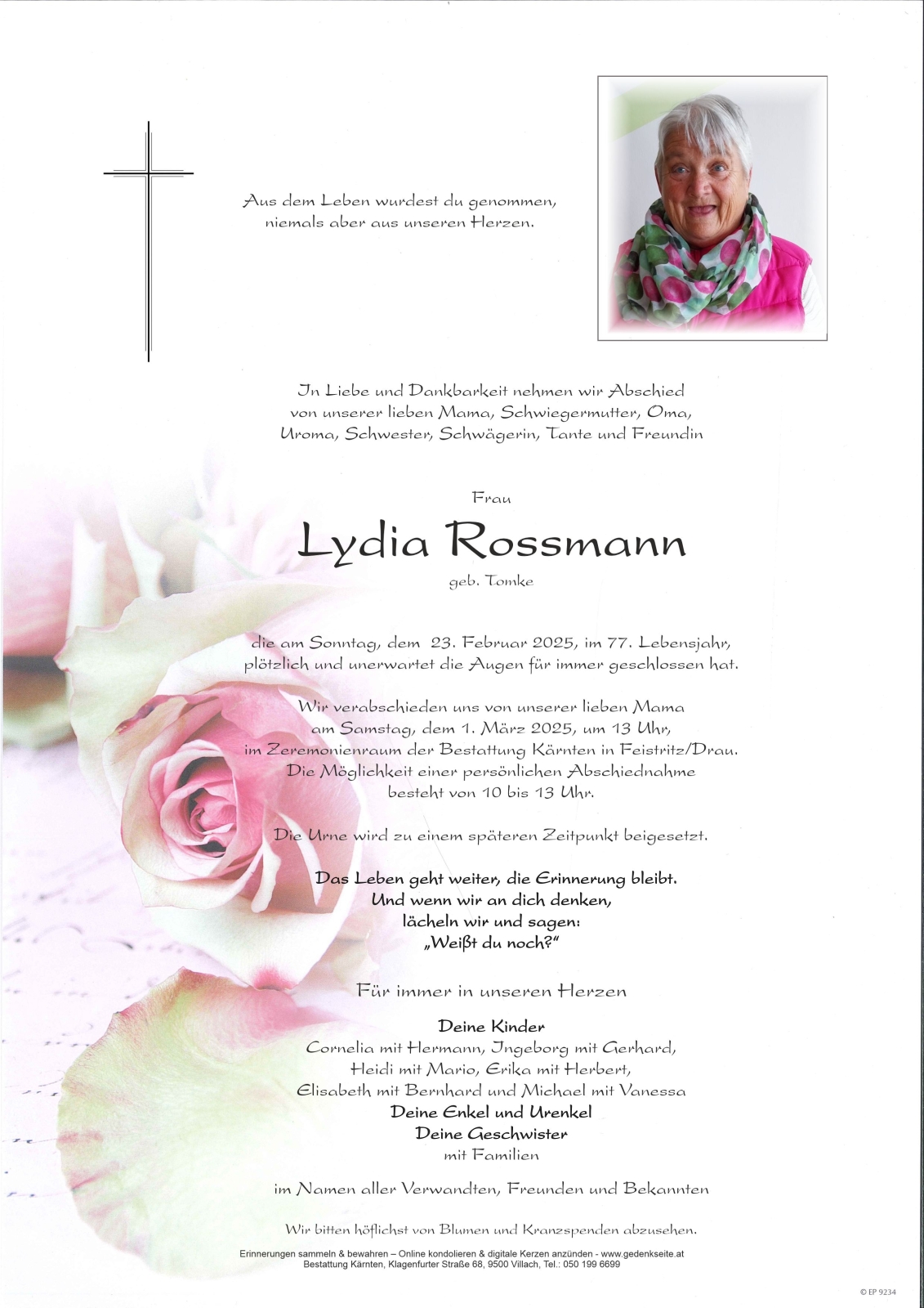 Trauerfeier am 1. März 2025 um 13:00 Uhr,