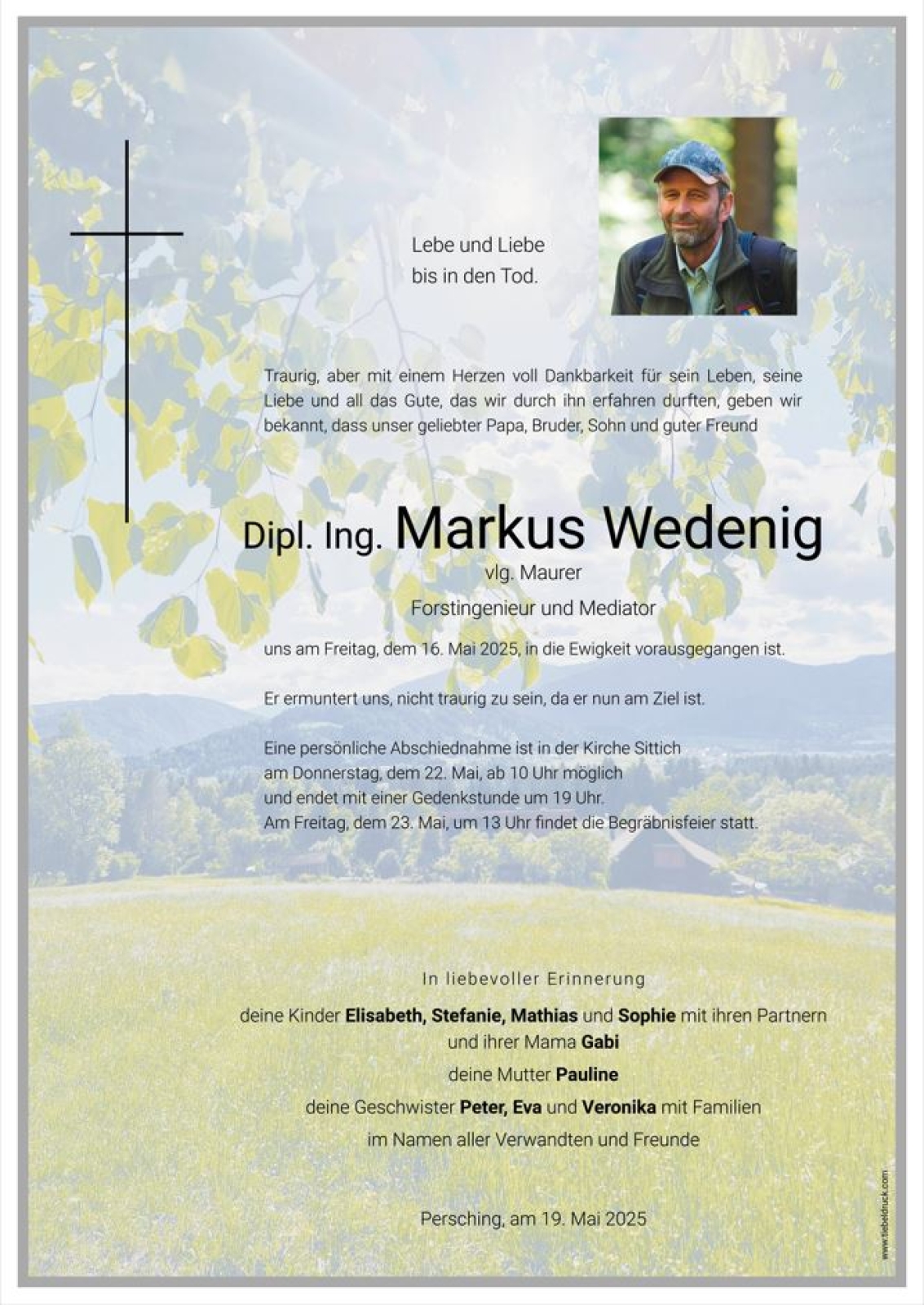 Trauerfeier am 23. Mai 2025 um 13:00 Uhr,