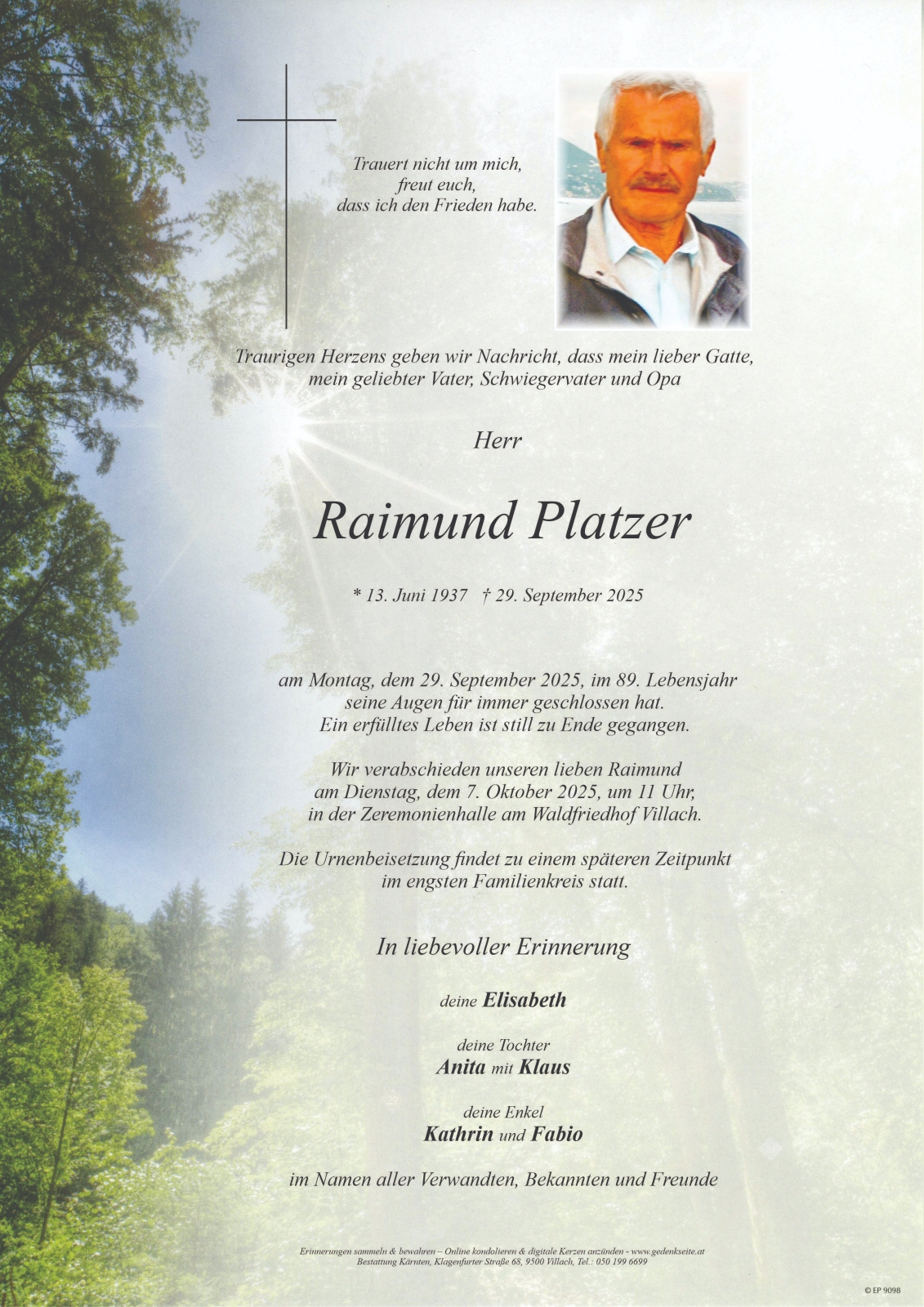Verschicken Sie eine private Nachricht an die Familie & Hinterbliebenen von Raimund Platzer. Diese wird nicht veröffentlicht, sondern landet direkt im E-Mail-Postfach der Administrator:innen dieser persönlichen Gedenkseite.