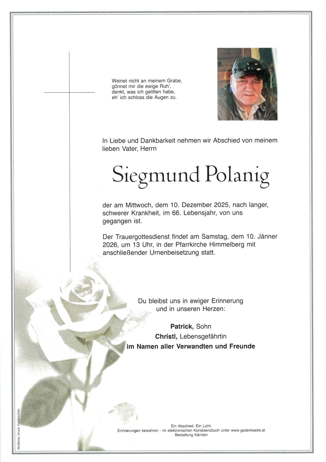 Verschicken Sie eine private Nachricht an die Familie & Hinterbliebenen von Siegmund Polanig. Diese wird nicht veröffentlicht, sondern landet direkt im E-Mail-Postfach der Administrator:innen dieser persönlichen Gedenkseite.