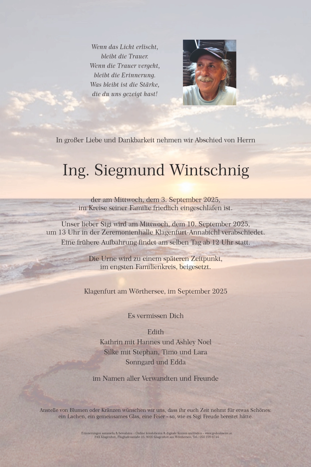 Verschicken Sie eine private Nachricht an die Familie & Hinterbliebenen von Siegmund Wintschnig. Diese wird nicht veröffentlicht, sondern landet direkt im E-Mail-Postfach der Administrator:innen dieser persönlichen Gedenkseite.