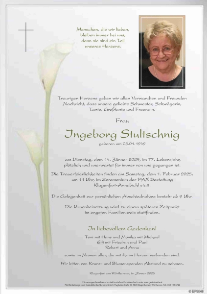 Information zur Suche: Nicht alle Suchangaben sind bei jeder verstorbenen Person hinterlegt. Bei Fragen oder Ergänzungswünschen (z.B. Vulgo- oder Geburtsname) hilft Ihnen unser Team gerne weiter.
