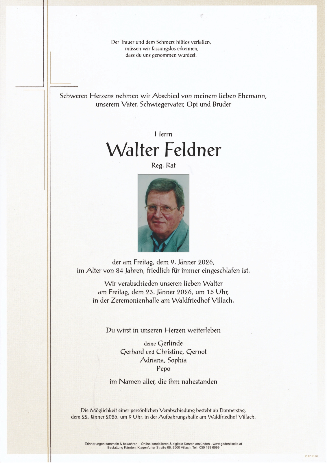 Trauerfeier am 23. Jänner 2026 um 15:00 Uhr,